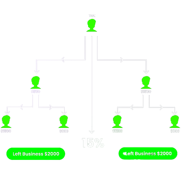 As your organization grows, you earn a percentage based on your active package tier – helping you unlock consistent dual-side profits.